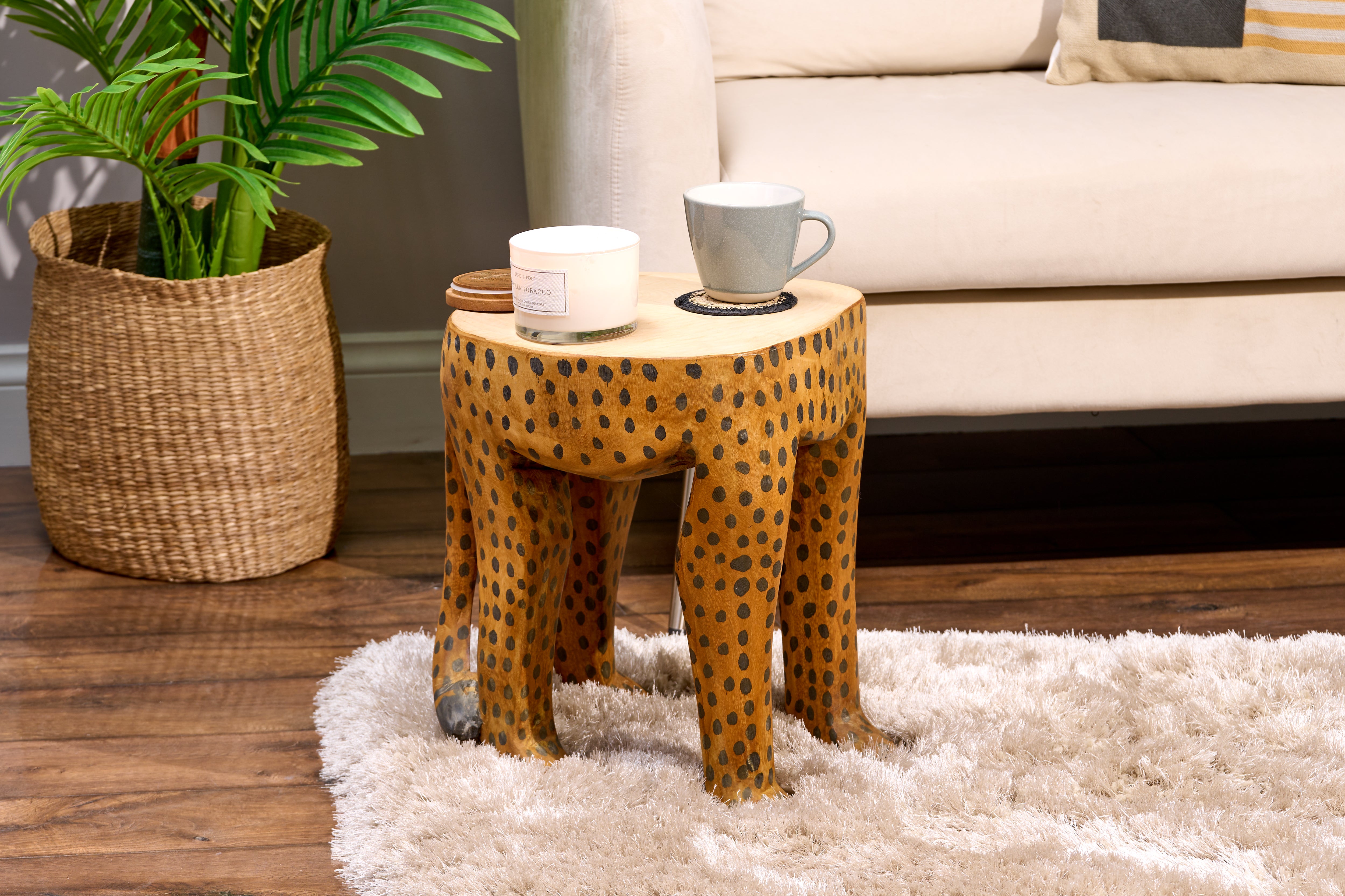 Our sturdy exotic wooden stools are hand carved in Africa, the size and style of each piece are unique to the characteristics of the tree they were made from, which makes every piece unique. You can use these stools as a little chair or as an eye-catching end table.
