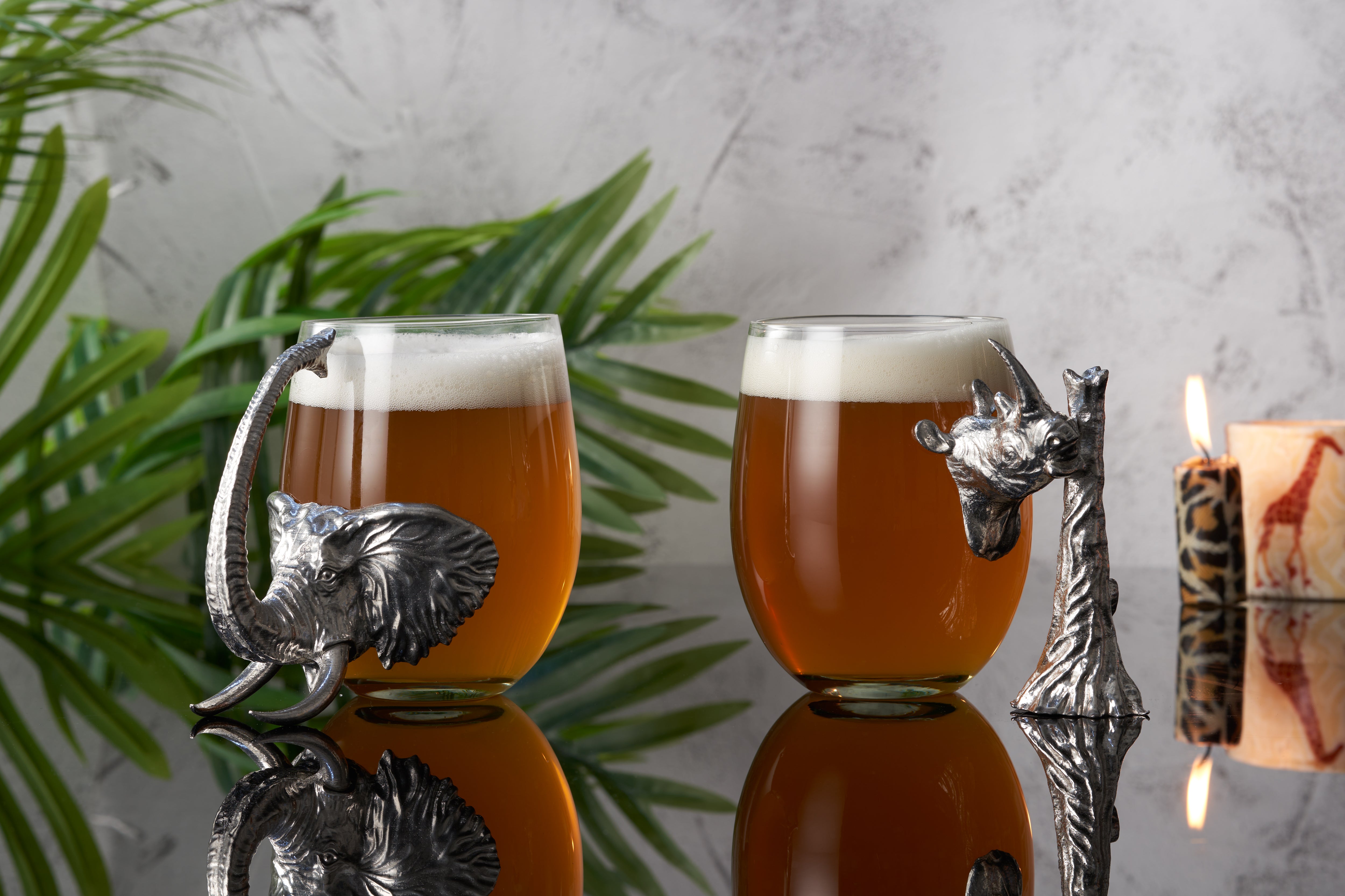 Our wine glasses are embellished with distinctive stems that honor Africa’s old tribes with exceptional designs and craftsmanship. The mouth blown glass offers excellent quality, which makes them functional and captivating. If you are not a wine enthusiast, take a look at our beer glasses with a stunning cheetah handle and more...