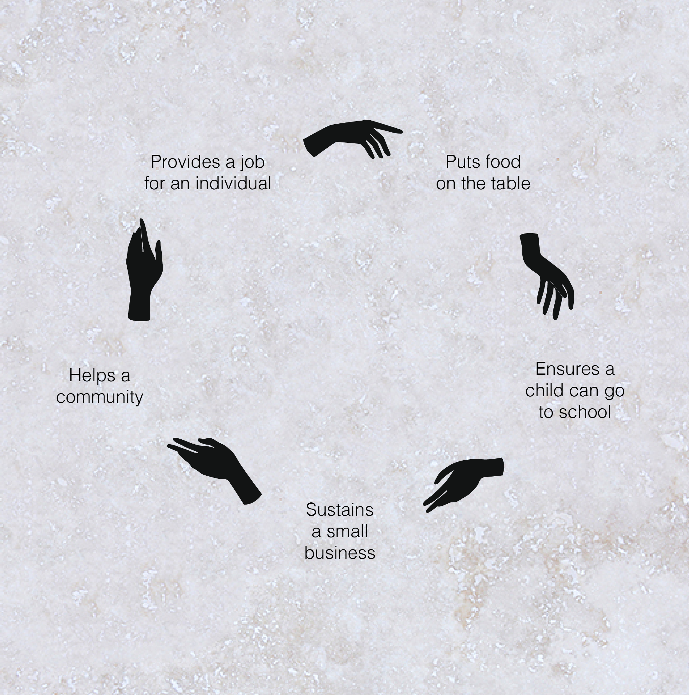 Wickaboo always has a stake in the small enterprises through which our items are sourced ethically. Wickaboo prefers to contribute back to the community rather than become a market maker for things that would otherwise be difficult to sell. Every hand that goes into the making, shipping, and packing of each item we sell is a hand we care about, a hand with a family we care about, and a hand that is a part of a community we care about.